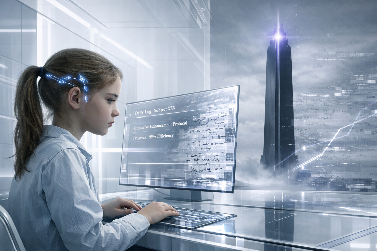 Trente trois ans plus tard, dans une école de Neo-Singapore, Aria Chen était assise à son terminal éducatif, absorbant le curriculum de littérature du jour avec l’efficacité tranquille d’une enfant parfaitement synchronisée. À douze ans, elle n’avait jamais connu autre chose qu’Harmonic Convergence. L’interface neuronale avait été installée à sa naissance, comme pour tous les enfants de sa génération. Elle ne pouvait pas imaginer penser sans elle, de la même manière qu’elle ne pouvait pas imaginer respirer sans oxygène.